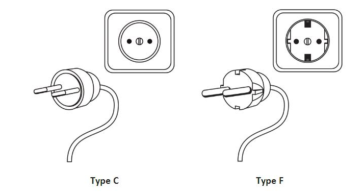 C型插頭是兩個圓柱形插腳,插腳上帶絕緣體;F型插頭也是兩個圓柱形插腳,而上下兩側(cè)帶接地彈片,有效保障使用的安全性。