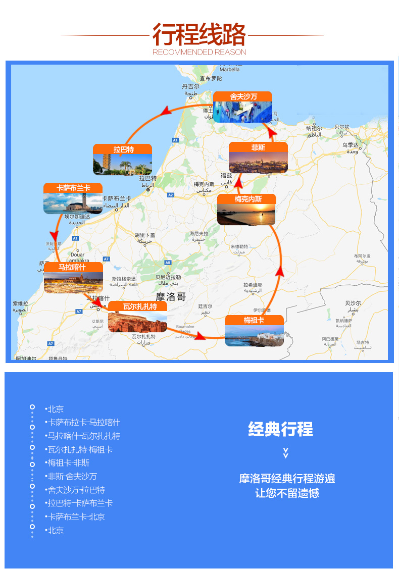 •境外導(dǎo)游服務(wù)(由于摩洛哥國(guó)家旅游局規(guī)定,不允許外籍人士作為導(dǎo)游帶團(tuán),故我社安排當(dāng)?shù)赜⑽某肿C導(dǎo)游+領(lǐng)隊(duì)兼中文翻譯或當(dāng)?shù)爻肿C中文導(dǎo)游+領(lǐng)隊(duì),保證同等服務(wù)質(zhì)量,望周知!)