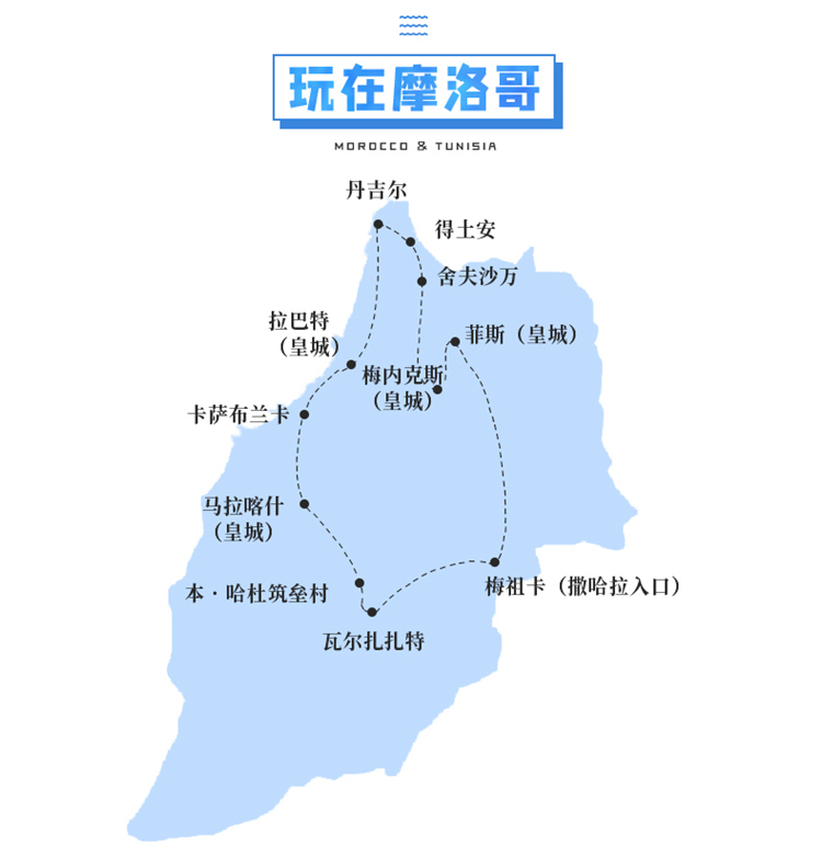 2. 摩洛哥各城市之間的車程時(shí)間較長(zhǎng).建議游客攜帶靠枕,零食,視聽設(shè)備以緩解旅途疲勞.